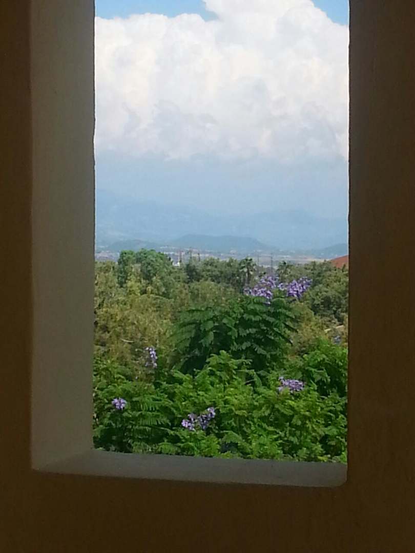 AusblickAusblick vom seitlichen Balkonfenster auf die einzige Wolke in drei Wochen.