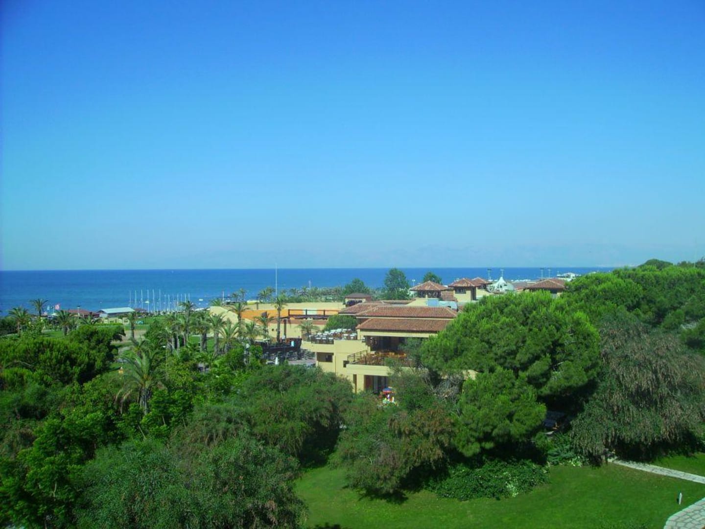 Ausblick vom Balkon auf das MeerBlick vom Balkon auf die a-la-carde-Restaurants (vorne), das Amphietheater (seitlich dahinter) und das Meer