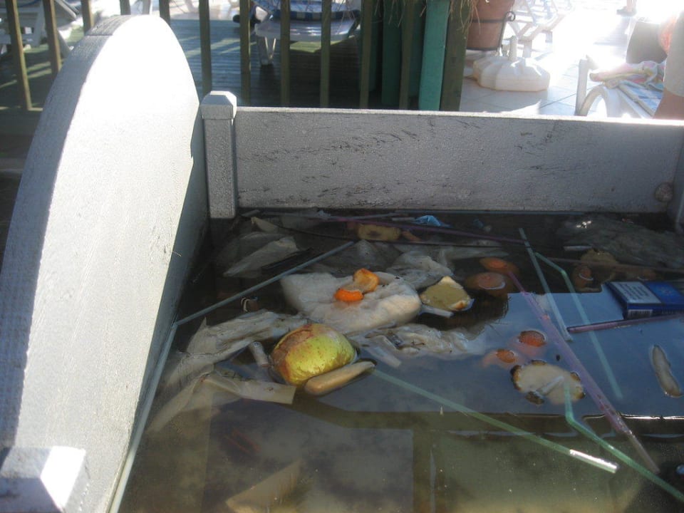 Lecker ServierwagenDieser Servierwagen mit Abfall und Regenwasser stand noch den ganzen nächsten Tag nach dem Unwetter am Pool.