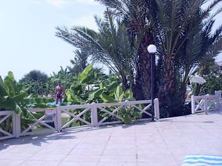 Hinter dem Baum liegt der Pool. Dies sind zwei terrassenförmige Ebenen mit Liegen, wo man fast immer seine Ruhe hatte - super schön!!