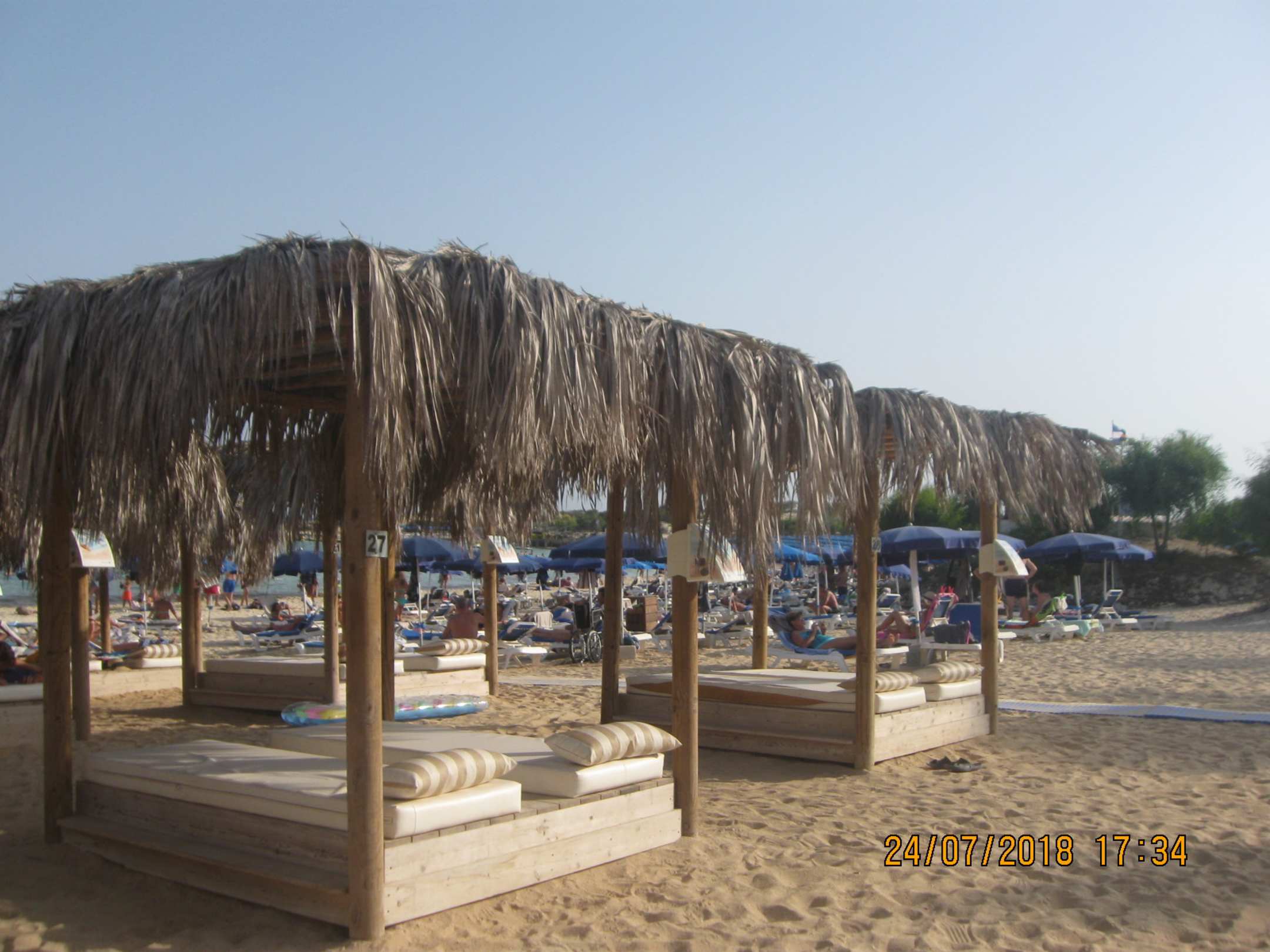 Diese Pavillons mit der Name Gazebos sind hier unverschämt teuer. Ich habe gefragt an der Beach Bar für die Preise und eine Mitarbeiterin aus Polland hat mir gesagt c.a. 50 EUR/Tag im Sommer (hoch saison).