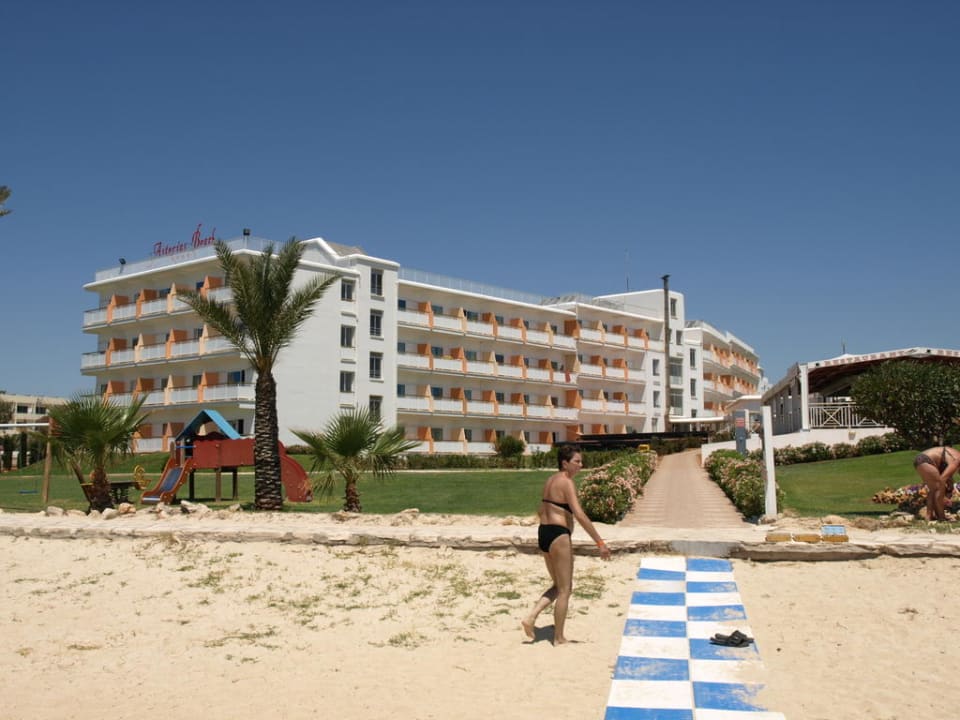 Blick vom Strand zum Hotel