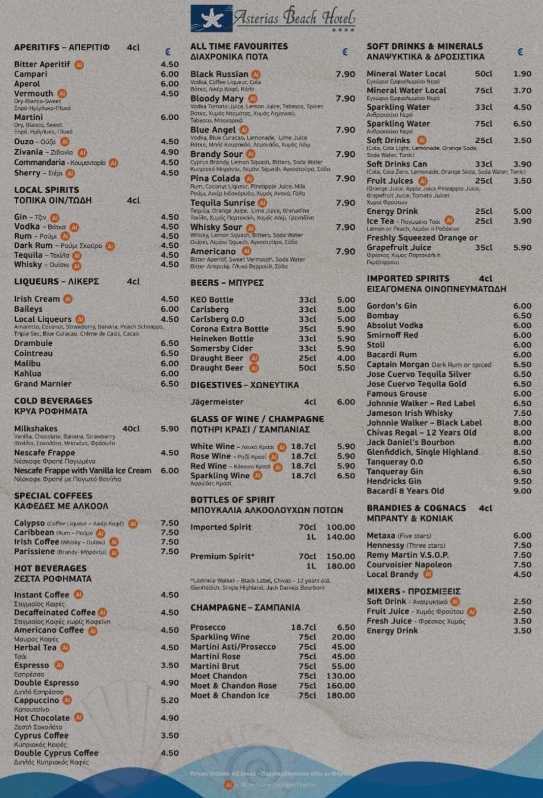 Getränkekarte mit genauer Übersicht, was all inklusive ist und was nicht