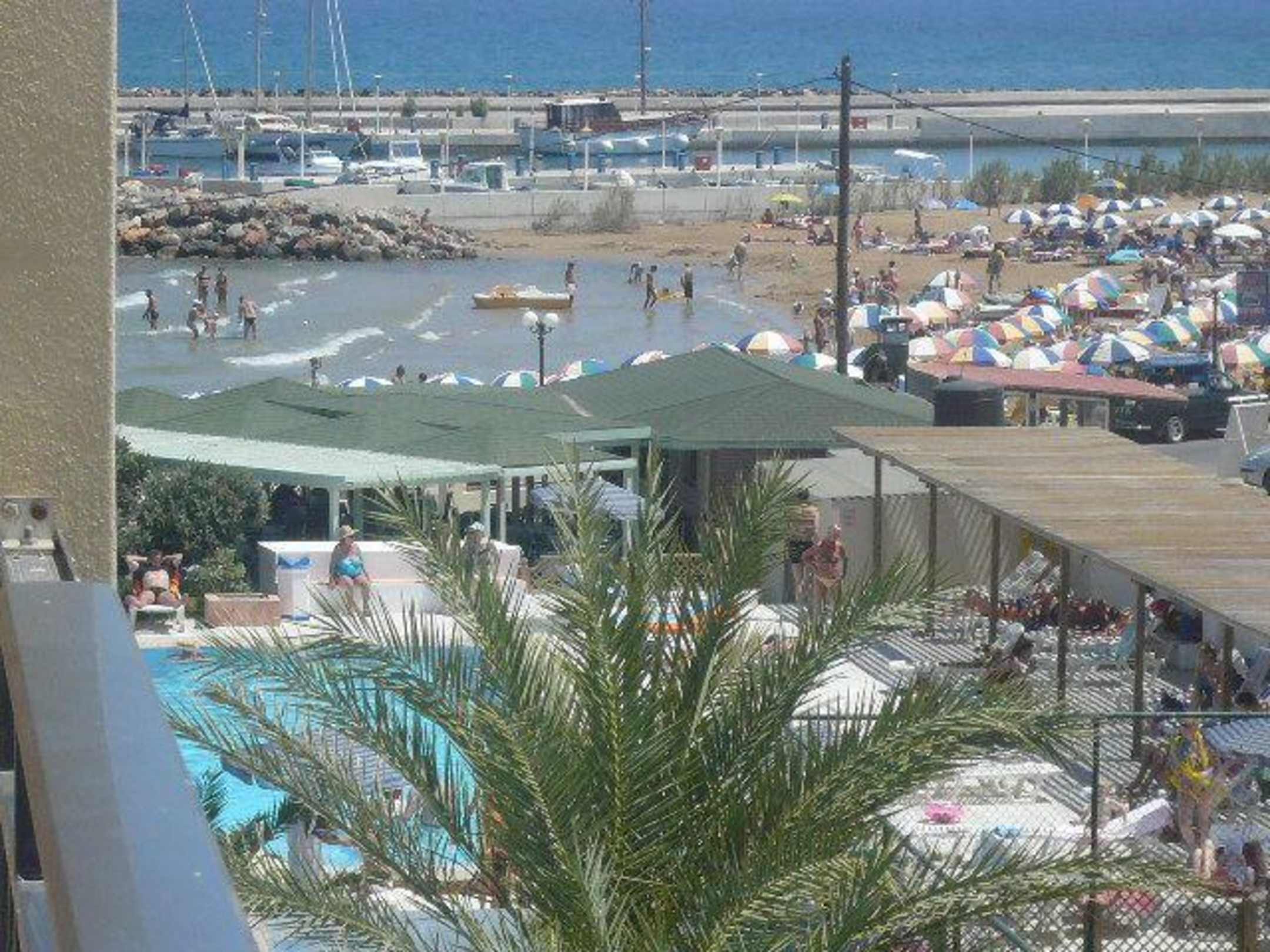 Widok z okna hotelowego na basen i plażę