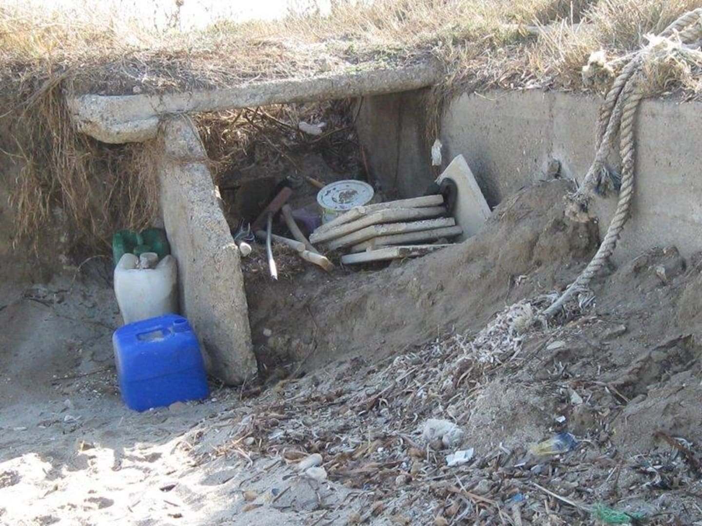 Unterhalb der Liegen Dreck und Abfall.