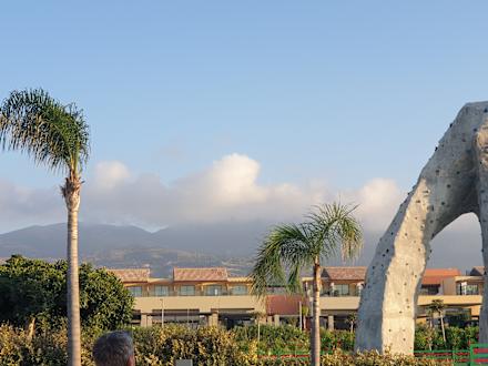Ausblick von der Anlage hoch zu den Bergen