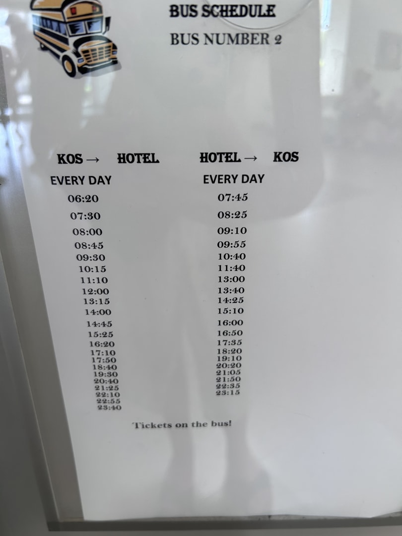 Abfahrten des Busses nach Kos Stadt und zurück
