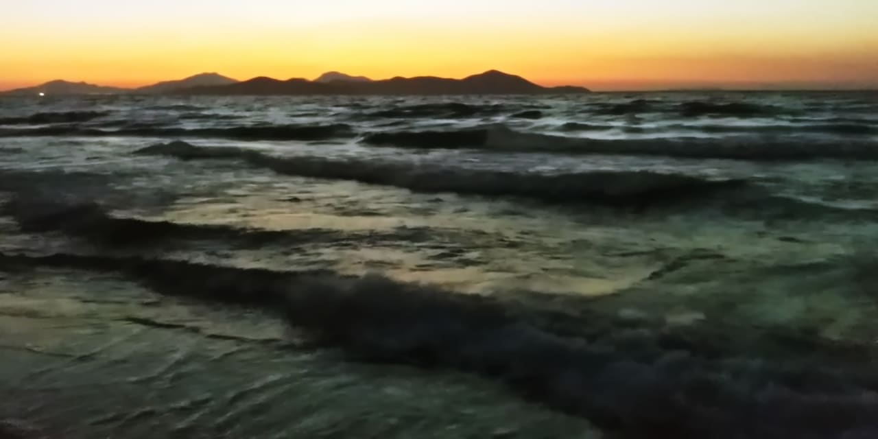 Blick auf die Nachbarinsel. Der Sonnenuntergang ist meistens sehr farbenintensiv.