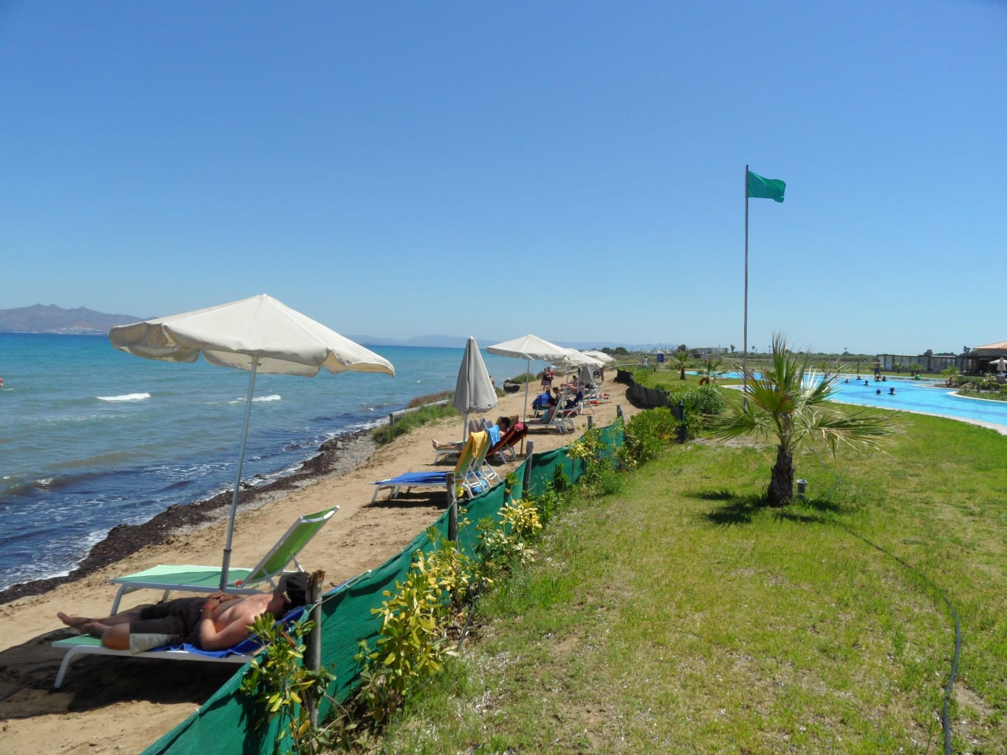 Strandabschnitt und Poolanlage