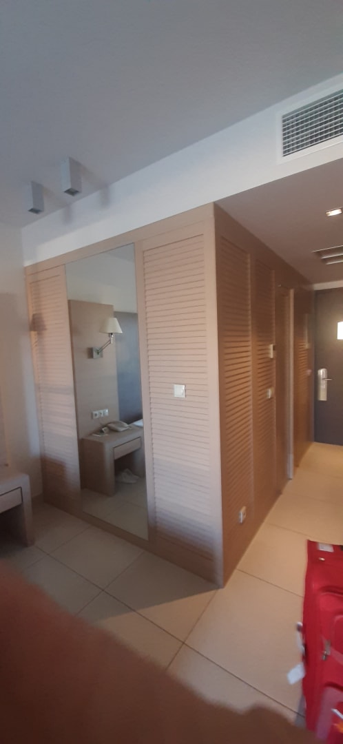 Doppelzimmer mit Blick auf Flur und Bad