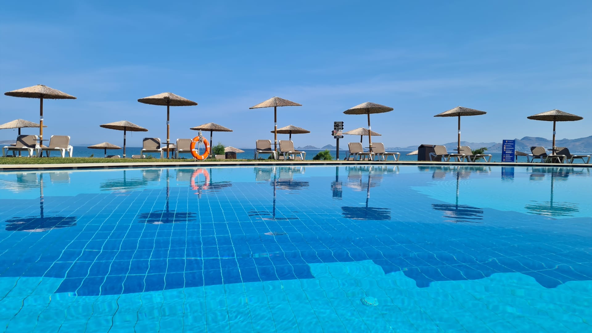Schöner großer Pool mit viel Platz und genügend Liegen