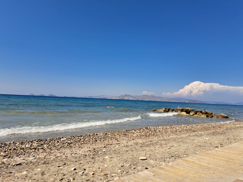 Schmaler Sand/Steinstrand direkt am Hotel