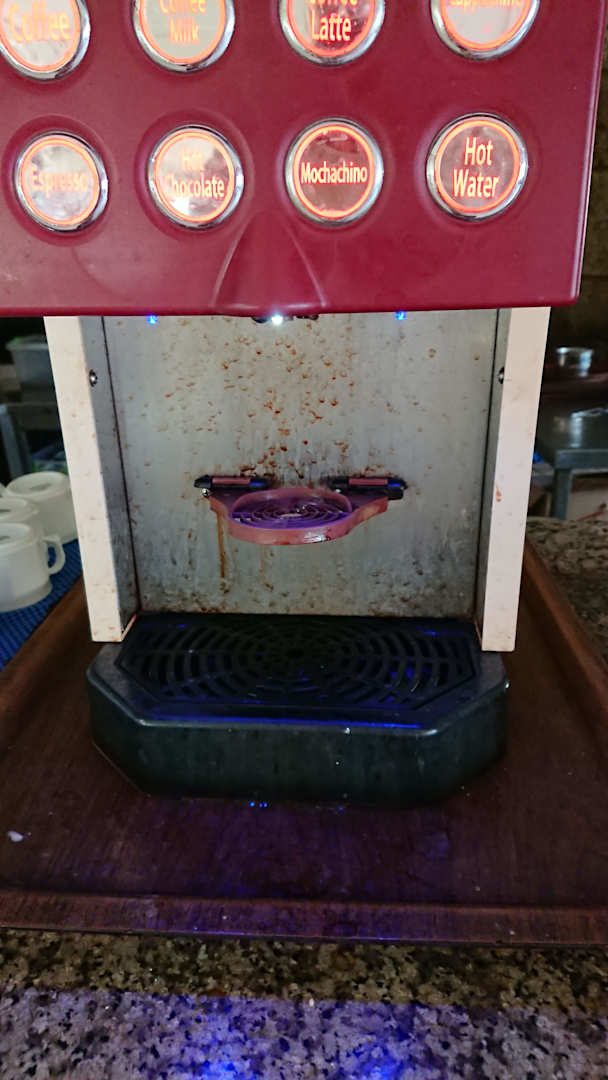 Alles verdreckt ein Kaffeeautomat für über Hundert Personen, man durfte nichts berühren weil alles klebte und nur Eckelhaft war, die Küche ist schlimmer wie jede alte Garage