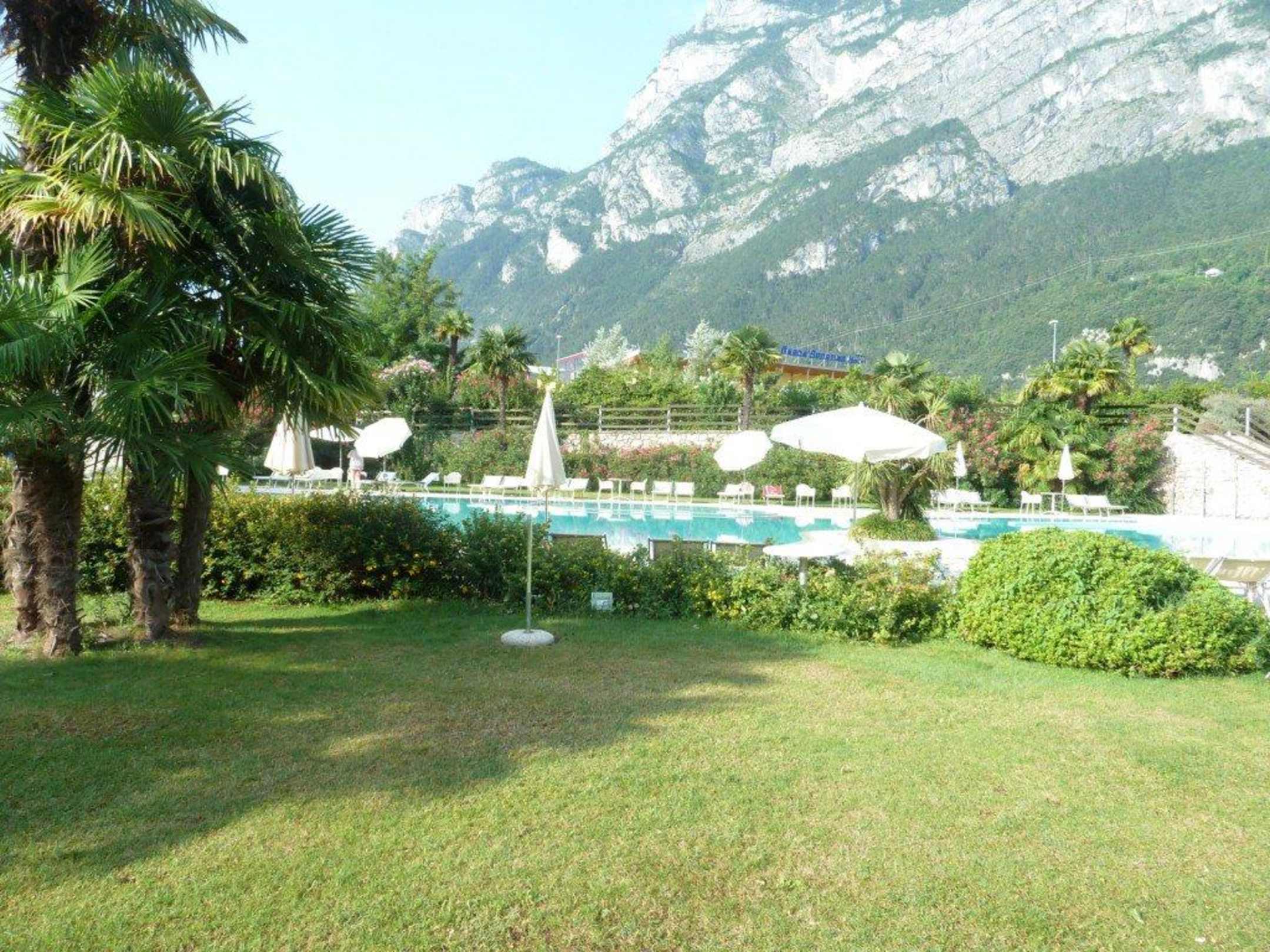 Park, im Hintergrund der Pool u. die schönen Berge