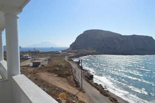 Blick von der Terrasse Richtung Strand Ag. Nikolaos (linke Bucht)