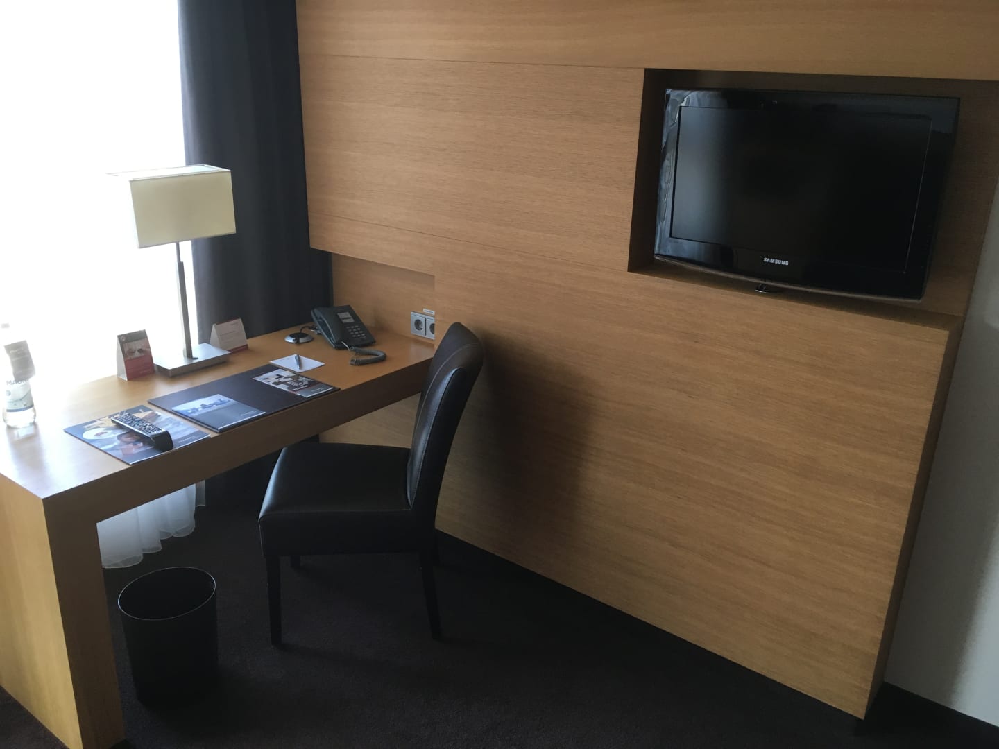 Schreibtisch mit Gratis-Mineralwasser