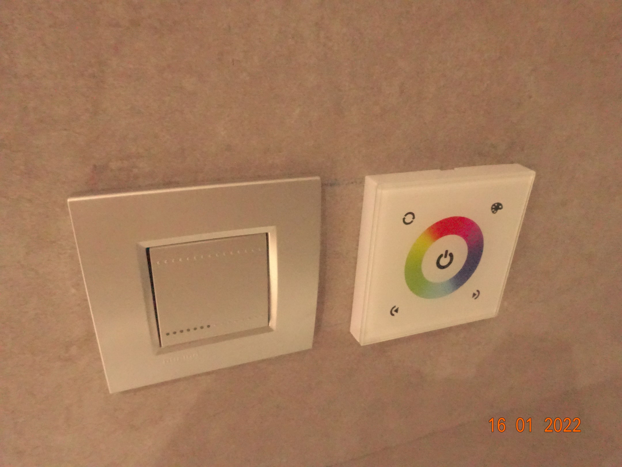 Links der Schalter für die Glasscheibe, rechts für die Lichtspiele