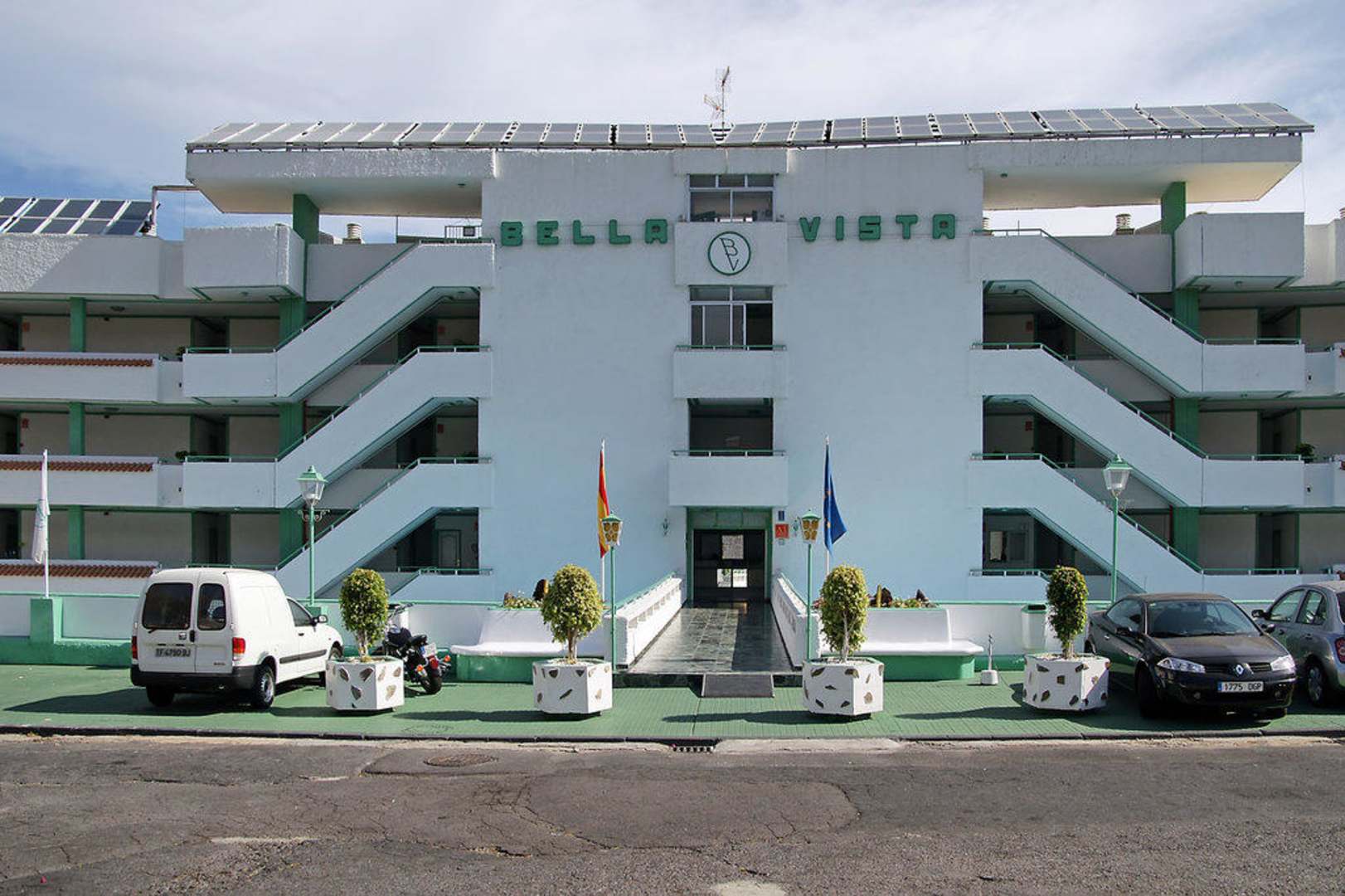 Poolseite und Hotel Eingang.