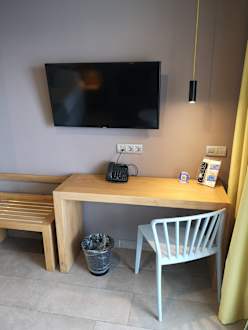 Blick ins Zimmer 412, TV und Schreibtisch
