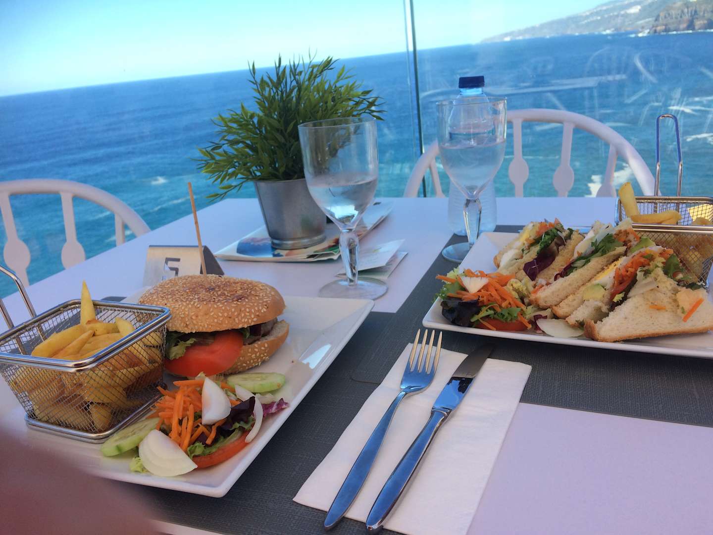 GastroMittagessen auf der Dachterrasse. Leckere Sandwiches und Burger zum günstigen Preis (Sandwiches mit Pommes 4,50 - 8 €)