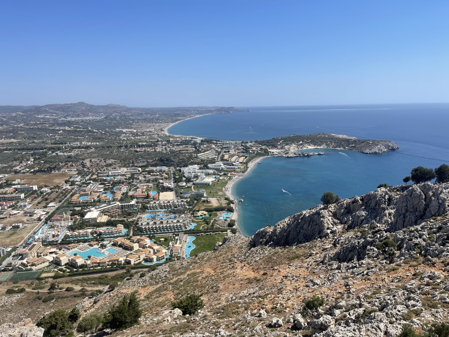 Blick vom Kolymbia Rock auf‘s Atlantica Aegean Blue und Park
