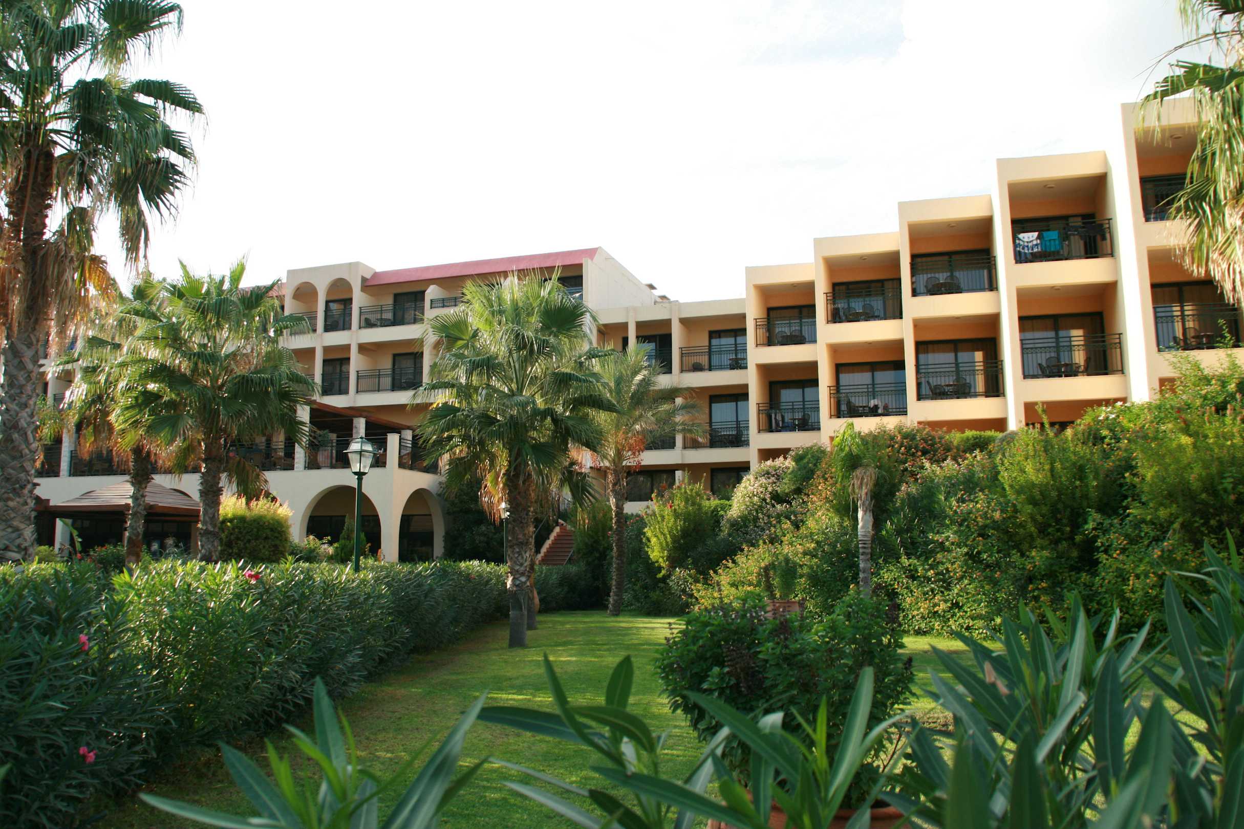 Blick auf Haupthaus von Poolanlage aus