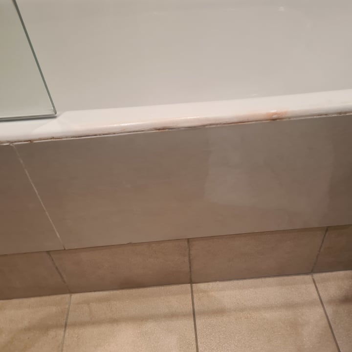 So abgenutzt sieht die Umrandung von der Badewanne aus.