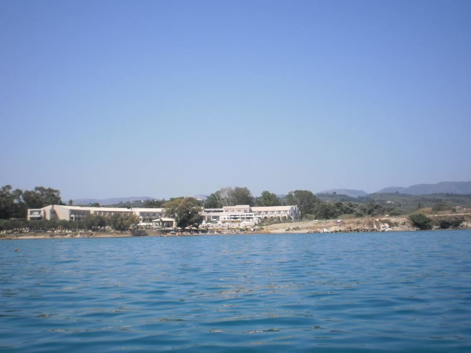 Blick vom Meer auf das Hotel