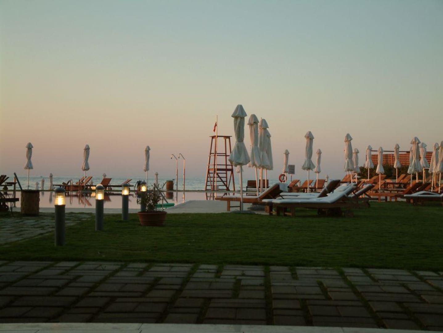 Außenpool bei Sonnenuntergang
