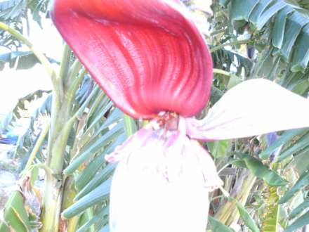 An dieser Bananenblüte hängen auch Bananen, nur leider werden die zu der Jahreszeit nicht mehr reif dienen nur zur Zierde auf dem gesamten Gelände.