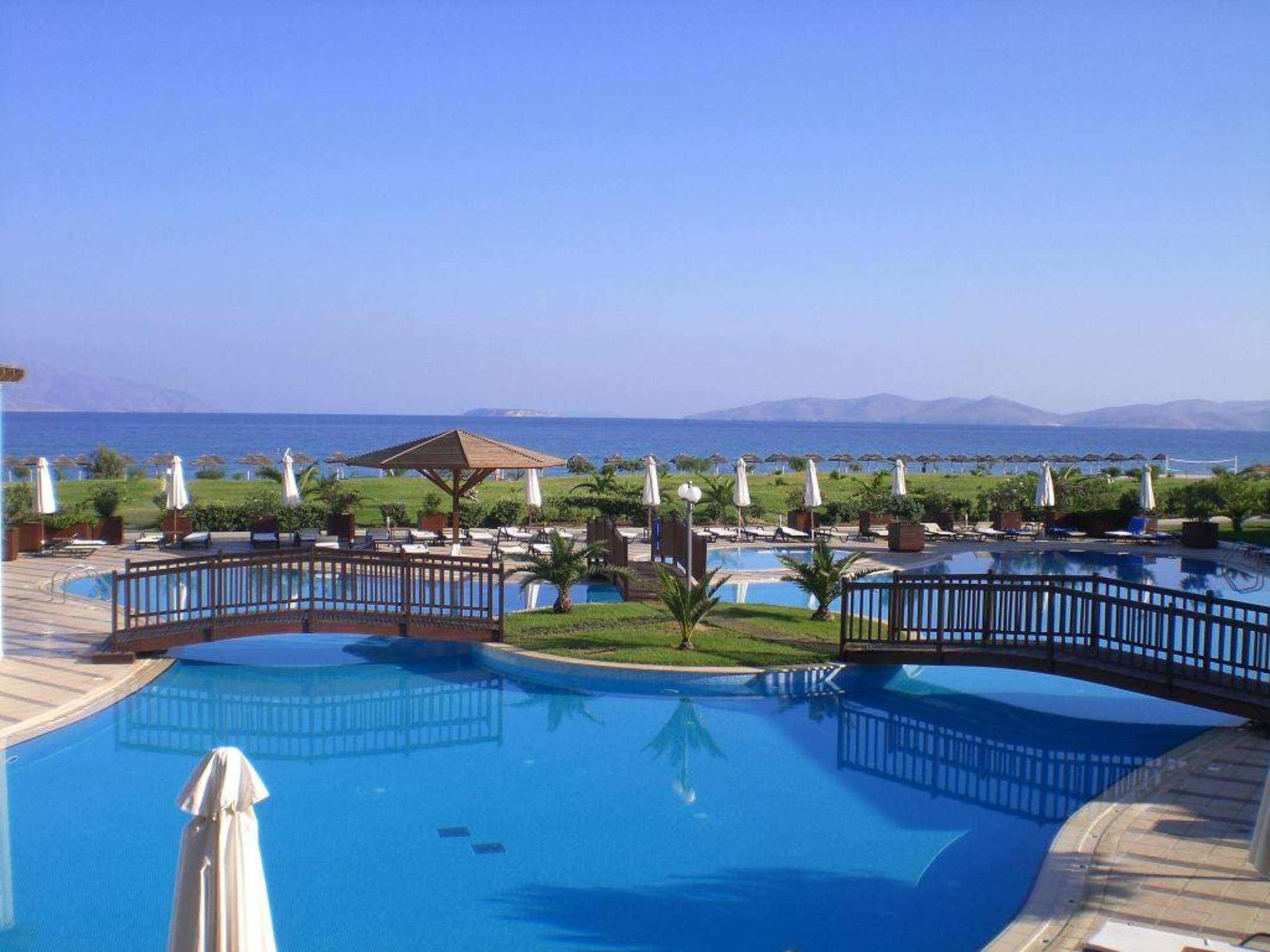 Aussicht von unserem Zimmerfast direkt am Strand - nur durch den letzen Pool getrennt