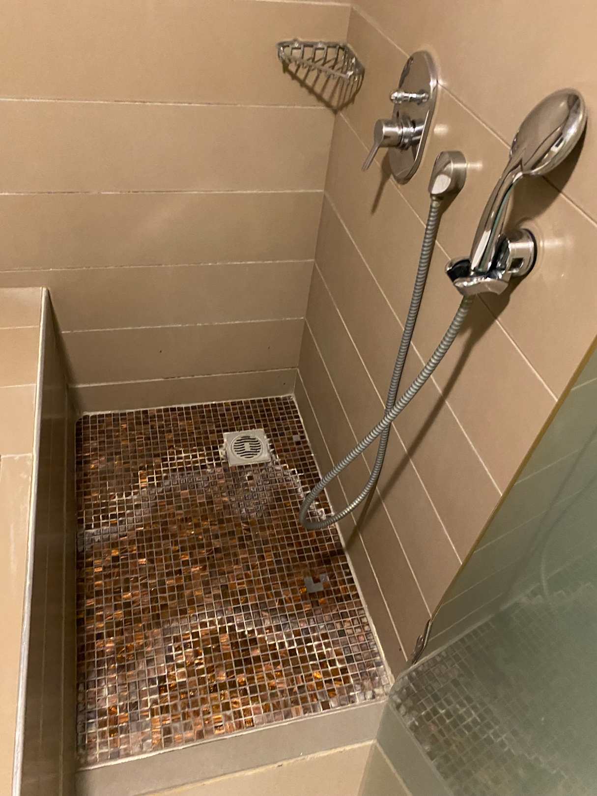 Verdreckte und verkalkte Dusche