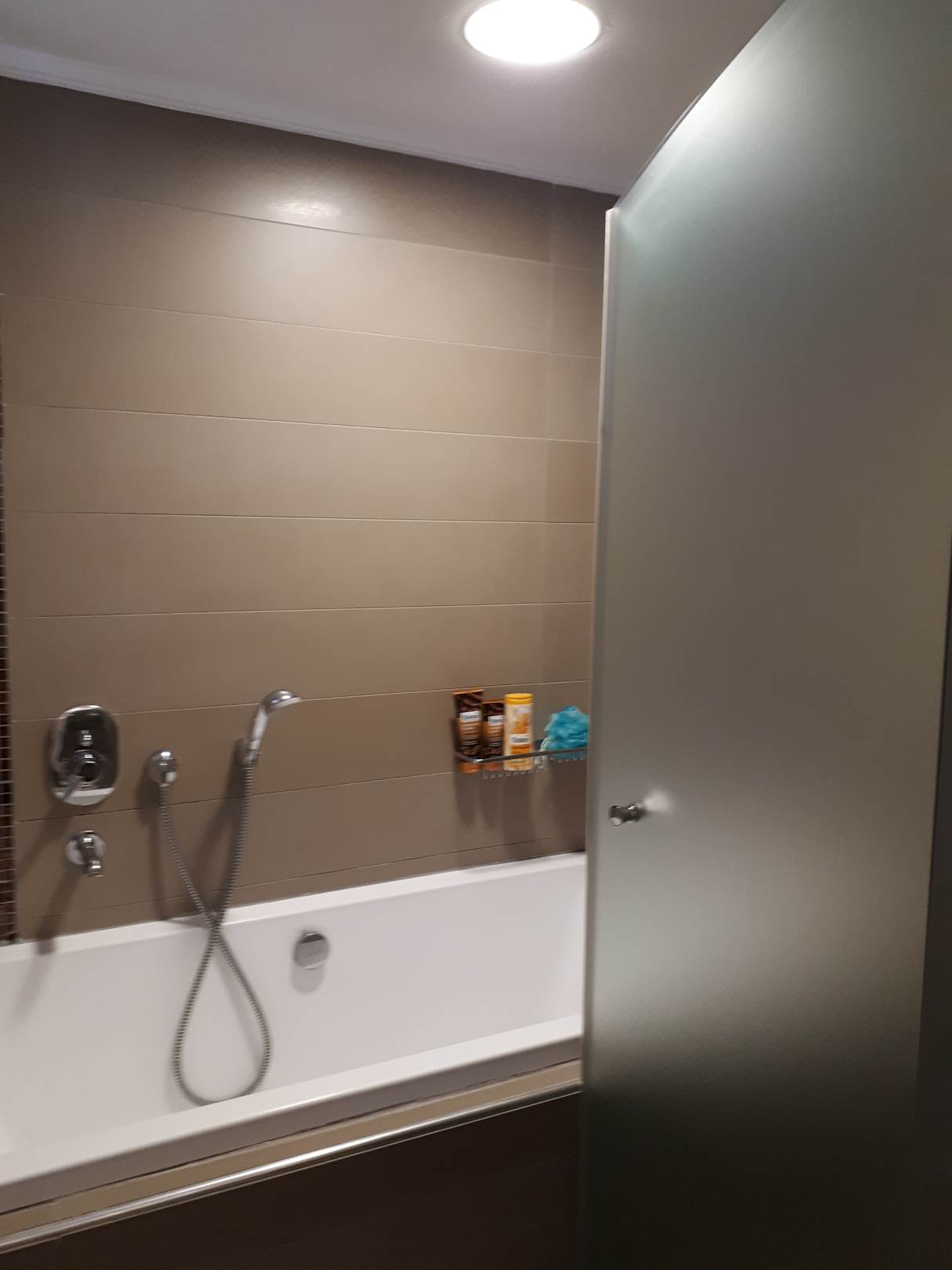 großes Bad mit begehbarer Dusche, Badewanne extra Toilette