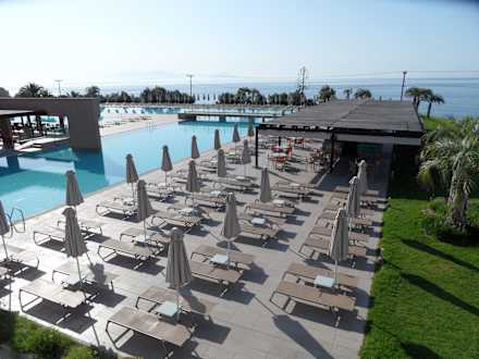 Ausblick auf den Pool und Meer Atlantica Mikri Poli Kos