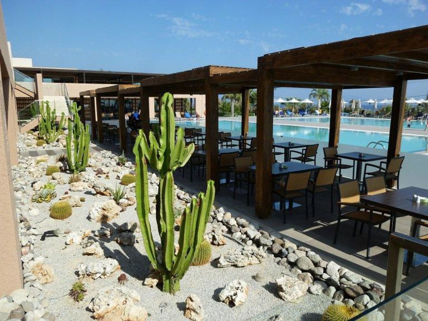Essen am Pool mit Blick zum Meer