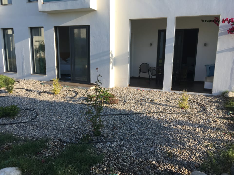 Der Blick auf unser Appartment Typ 2. Der Garten unserer Teressae war leider etwas kark.