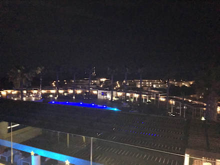 Blick von der Lounge zur Poolanlage