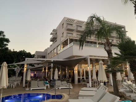 AußenansichtDas Hotel vom Pool aus gesehen, links der Jacuzzi sowie im Hintergrund links die Außenbar