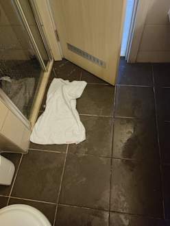Nach dem Duschen schwimmt Wasser draussen