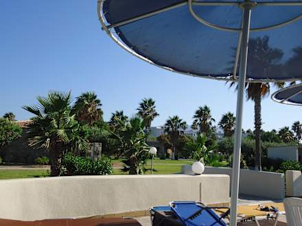Blick vom unteren Pool auf die Gartenanlage