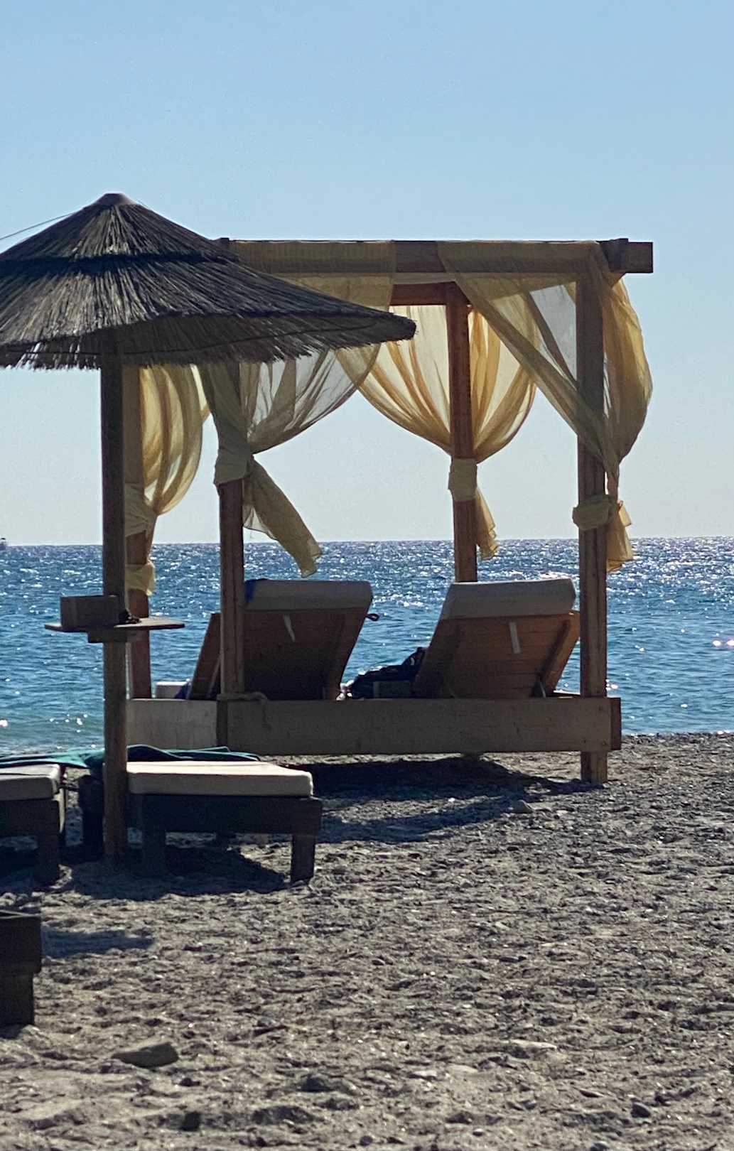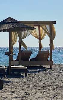 Sonnenliegen am Hotel-Strand