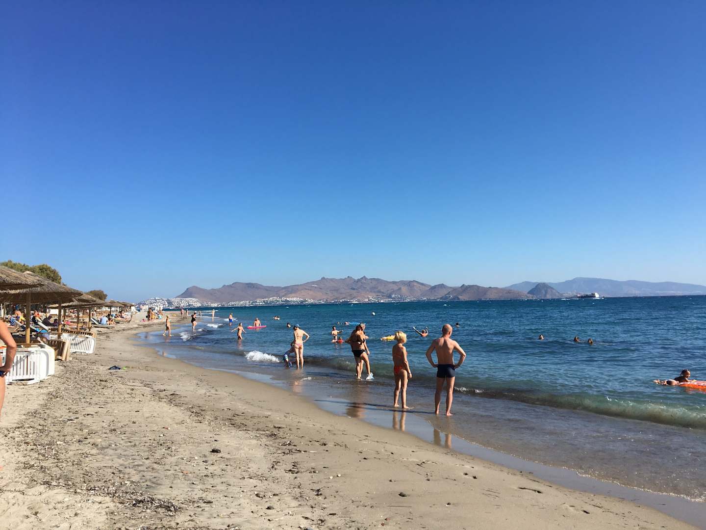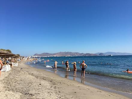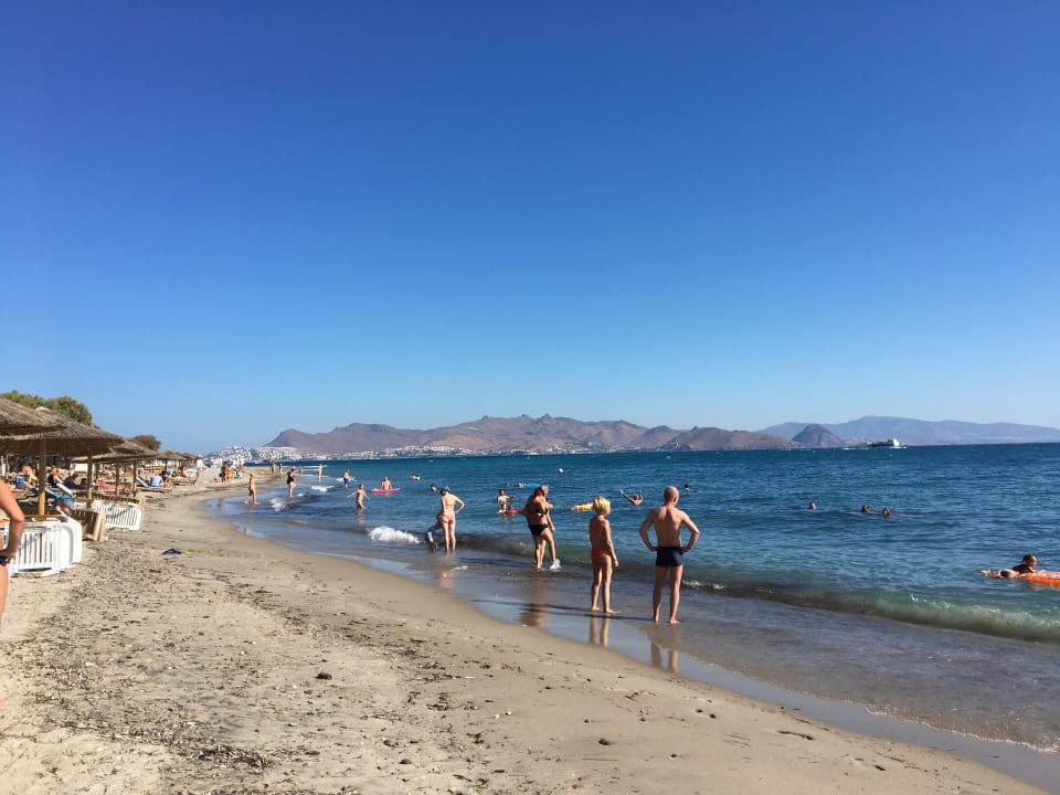 Hoteleigener Strand mit Blick auf die Türkei