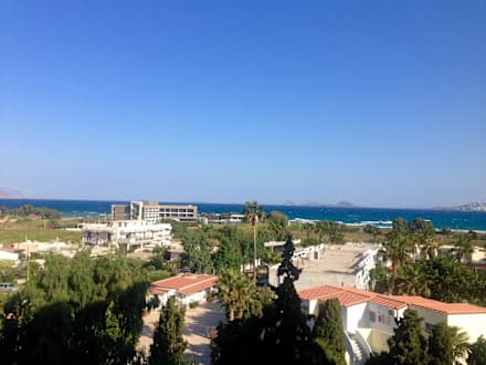 Ausblick von unserem Zimmer. Wir hatten ein normales Doppelzimmer mit seitlichem Meerblick gebucht und unsere Erwartungen wurden voll erfüllt.