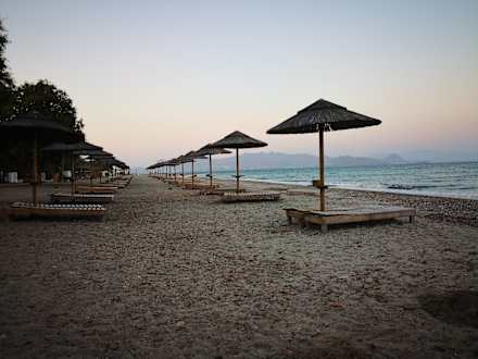 StrandStrand direkt am Hotel in der Abenddämmerung. Man kann den Menschen in der Türkei fast schon zu winken :-)