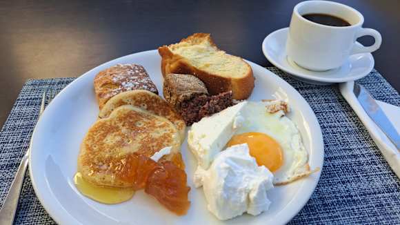 Lecken Frühstück auf der Terrasse genießen