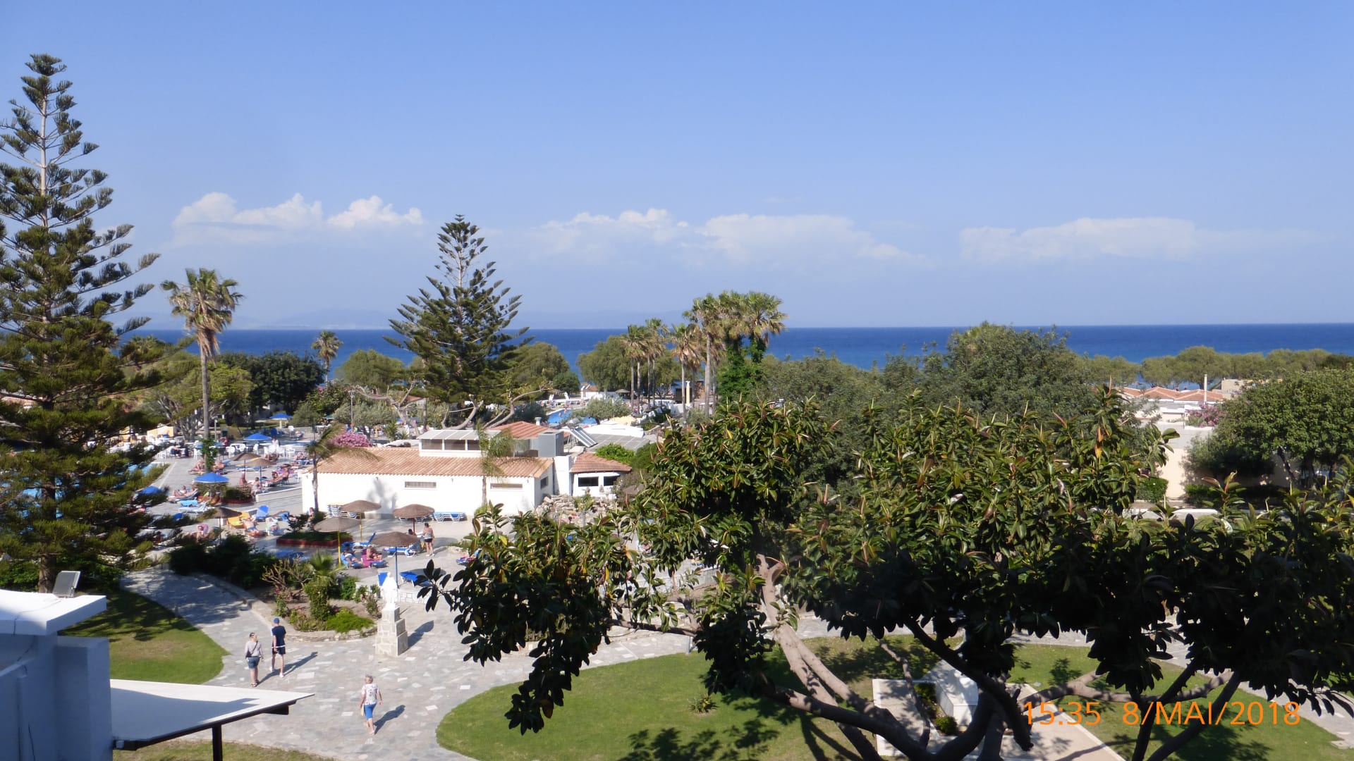Ausblick vom Haupthaus 2. OG auf den Garten und das Meer