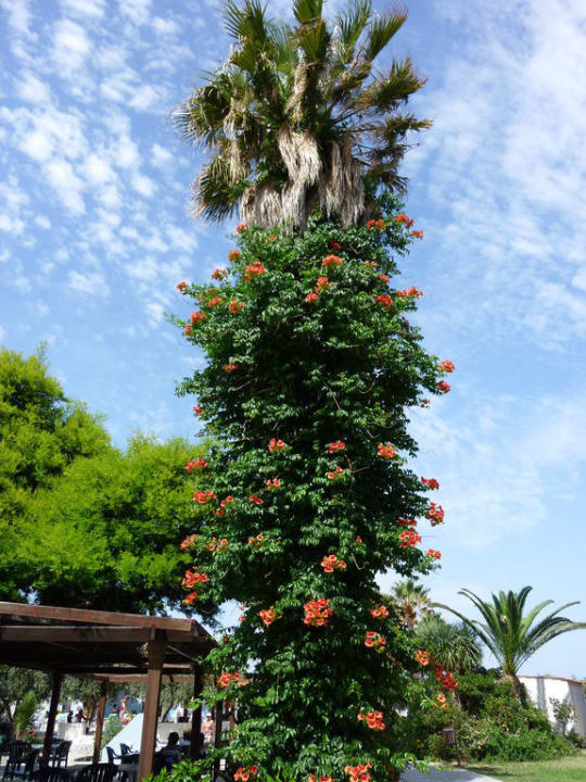 Palme mit Hibiskus-Pflanzen