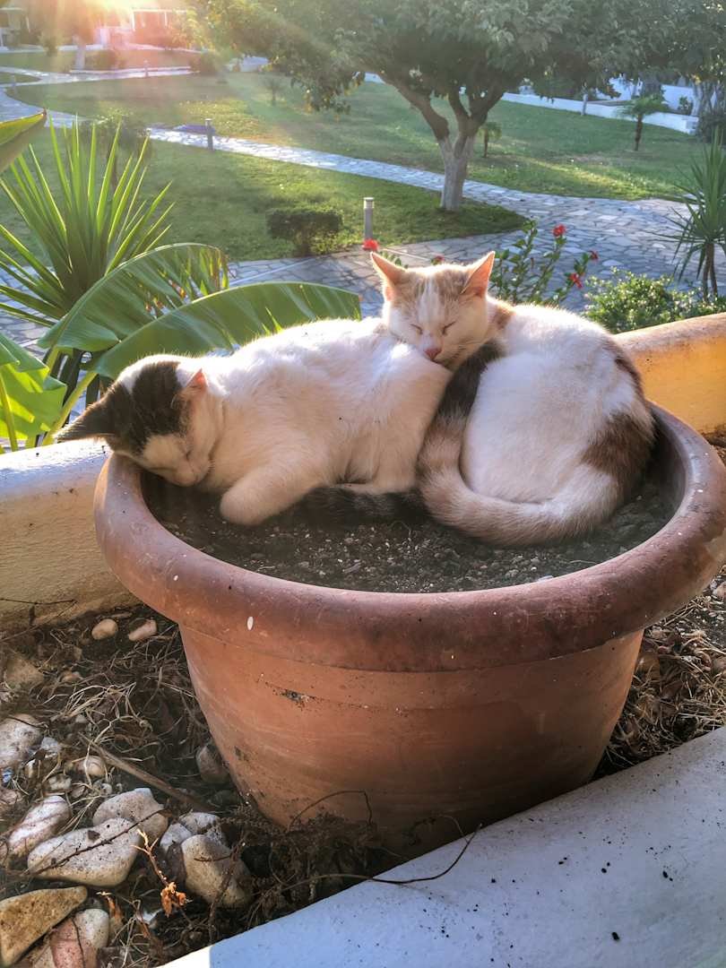 Mehrere Katzen in der Gartenanlage