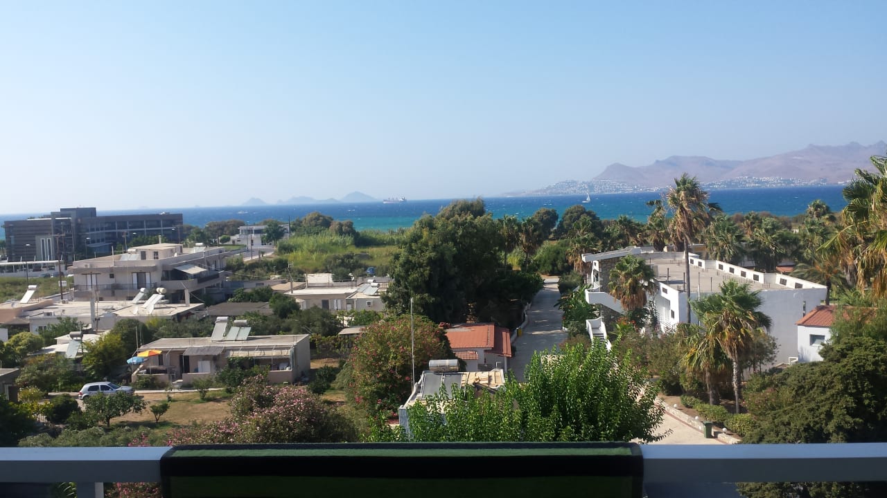 Meeresblick vom Balkon über die große Anlage (rechts von dem Weg)