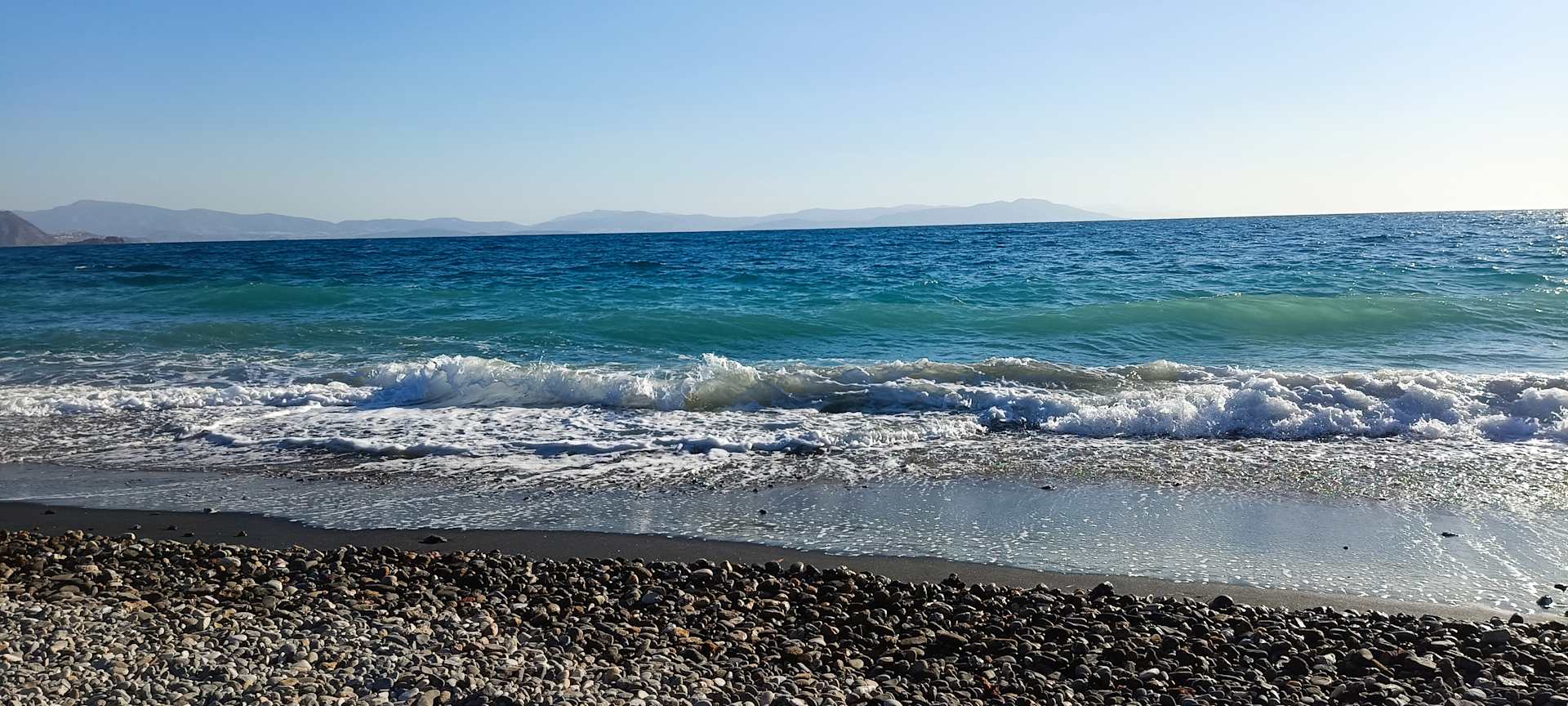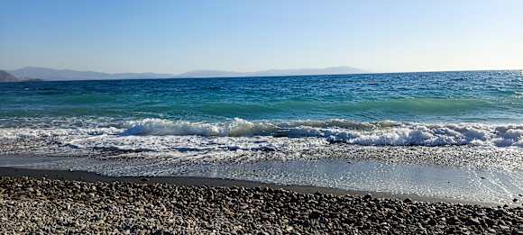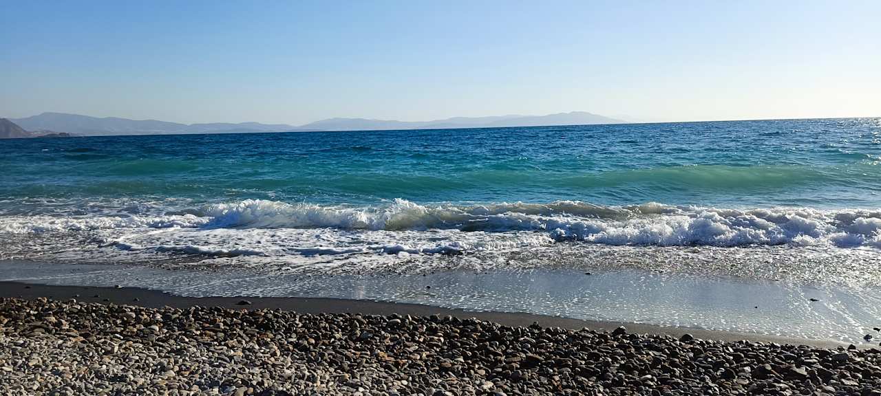 Strand steinig.Es sind wirklich Badeschuhe nötig.Wasser traumhaft.